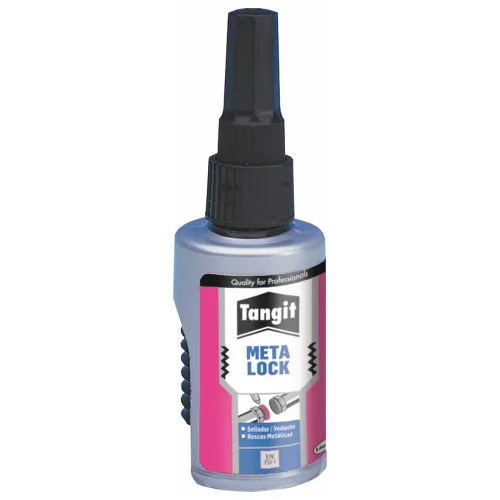 Tangit Metalock es un sellador de roscas anaeróbico de un solo componente que se endurece y polimeriza rápidamente en ausencia de aire, cuando está confinado entre dos superficies metálicas, como tuberías roscadas.