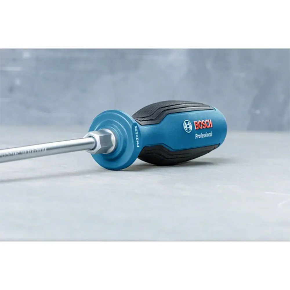 Tournevis PH2X125, Le tournevis cruciforme Bosch PH2 Professional est extrêmement résistant grâce à sa tige métallique continue qui s´étend à travers le manche, son capuchon métallique résistant aux chocs et sa pointe trempée.
