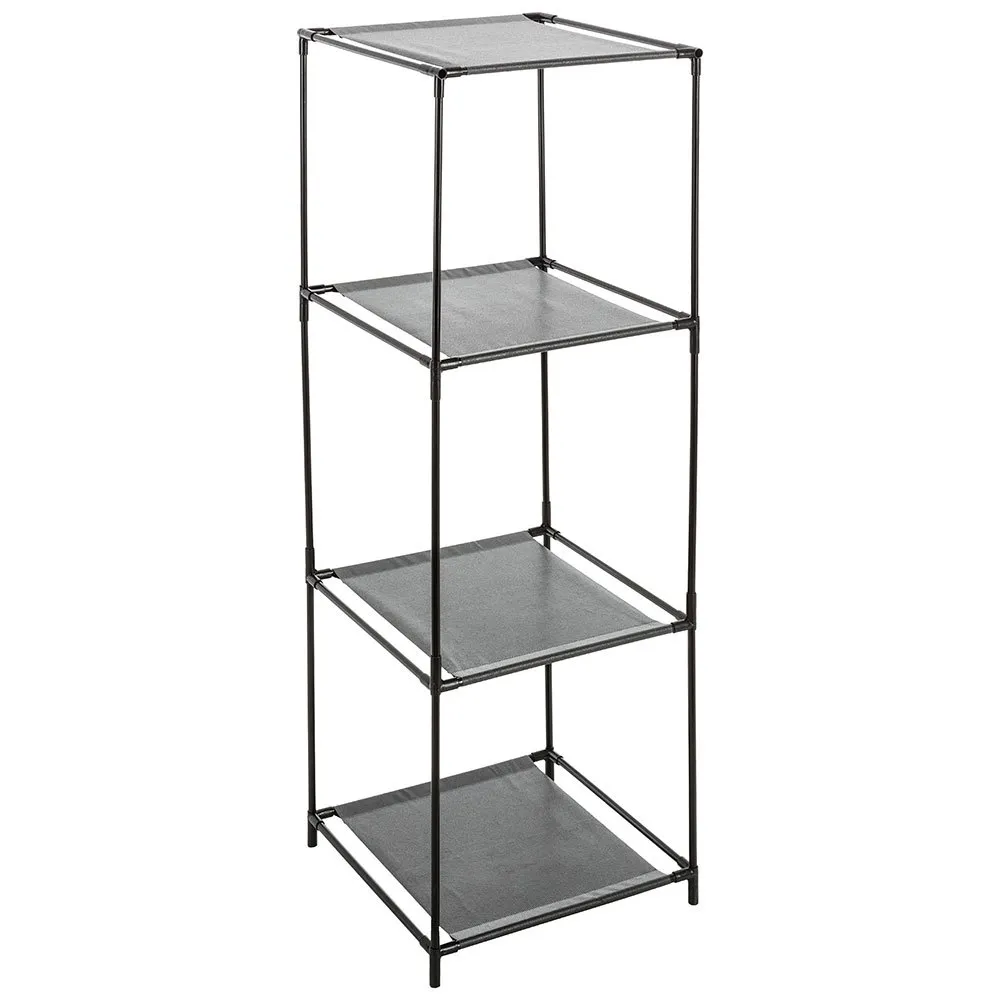 Structure de rangement à 3 étages, avec 4 étagères ou 3 casiers-casiers ouverts.