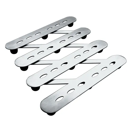 Dites adieu aux brûlures et aux rayures sur le plan de travail grâce au dessous de plat extensible IBILI. Cet ingénieux indispensable de cuisine, fabriqué en acier inoxydable élégant, s´adapte à vos besoins. Il se déploie sans effort, passant d´une taille compacte pour une seule casserole à 45 cm de long pour les grands plats à gratin et les plaques de cuisson. Des pieds antidérapants offrent une base sûre et stable, protégeant vos précieuses surfaces de la chaleur et des éraflures. Une fois utilisé, il se rétracte pour un rangement simple et peu encombrant. Un mélange parfait de design moderne et de fonctionnalité polyvalente pour toute cuisine