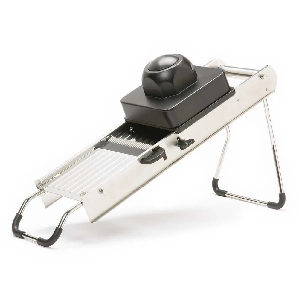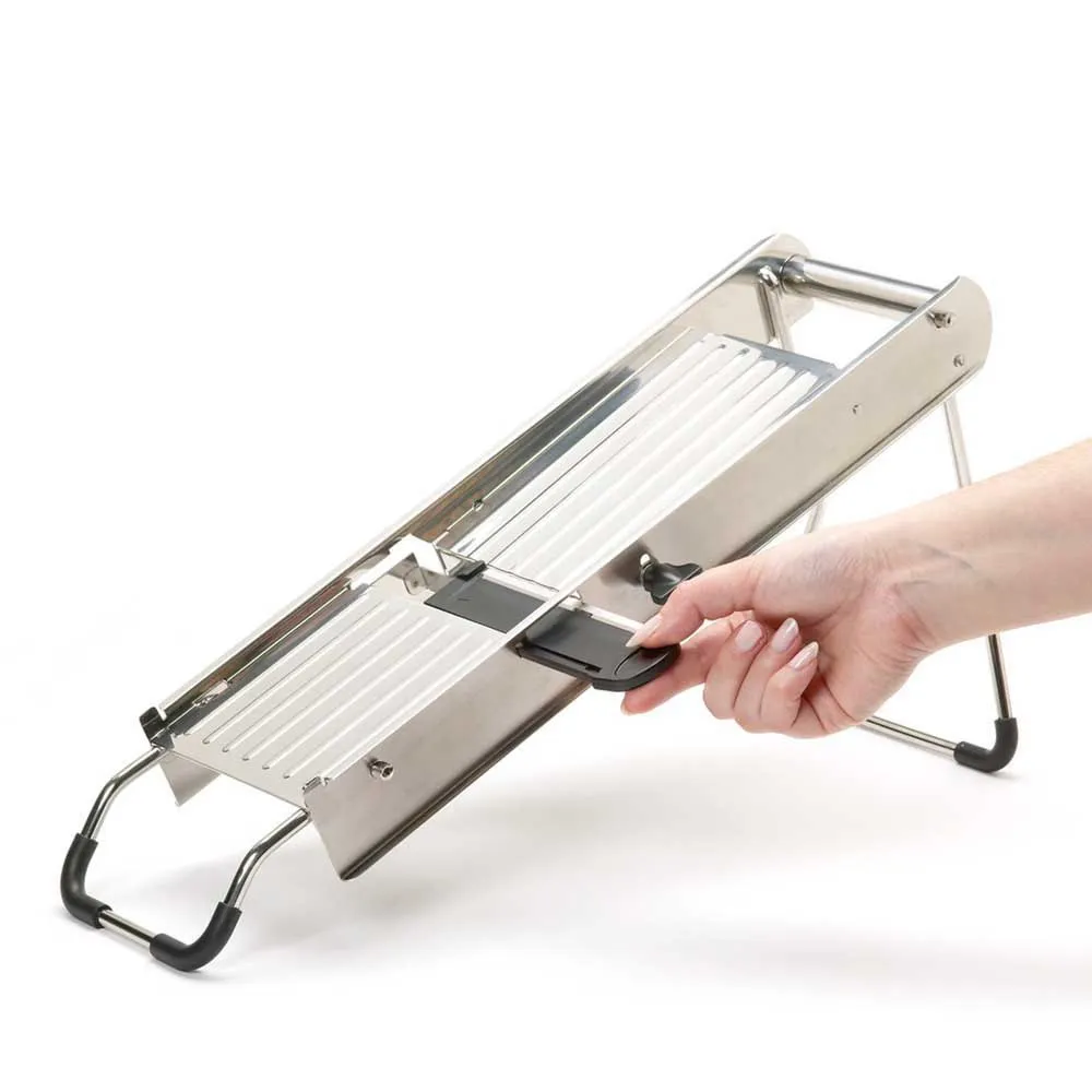 Comme vu à la télé ! Le set de mandoline en acier inoxydable MasterClass est l´outil professionnel ultime pour préparer des fruits et légumes frais.