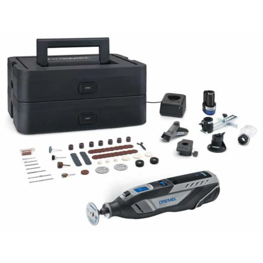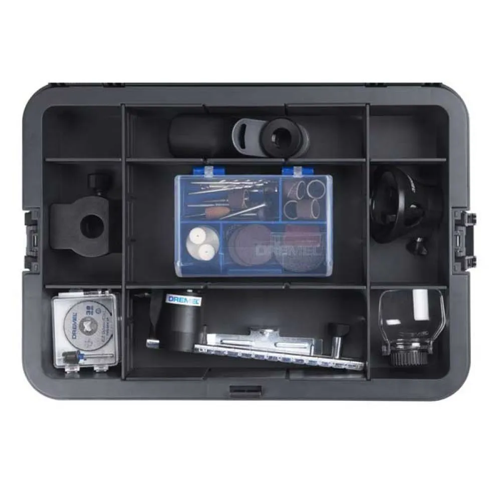 - Sperimenta la massima versatilità con il kit multiutensile Dremel 8250-5/65, dotato di 5 accessori e 65 complementi per una varietà di compiti, tutti ordinatamente organizzati nella scatola Dremel con divisori regolabili per uno stoccaggio personalizzato.