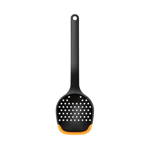 Migliora la tua cucina con il cucchiaio forato in silicone FISKARS Functional Form. Il suo design innovativo presenta bordi flessibili in silicone che raschiano a fondo pentole e padelle senza graffiare le superfici antiaderenti. La generosa lunghezza di 37.2 cm tiene le mani al sicuro dal calore, rendendolo perfetto per scolare la pasta, raccogliere le verdure o schiumare cibi fritti. Resistente al calore fino a 220°C e lavabile in lavastoviglie per una pulizia senza sforzo, questo versatile mestolo forato combina l´elegante stile scandinavo con una funzionalità ineguagliabile per qualsiasi cucina moderna