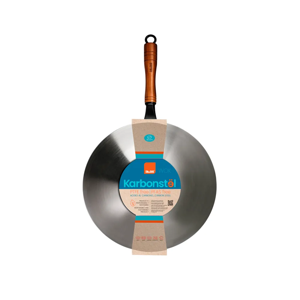 - Wok KarbonSteel in acciaio al carbonio (99% ferro, 1% carbonio)