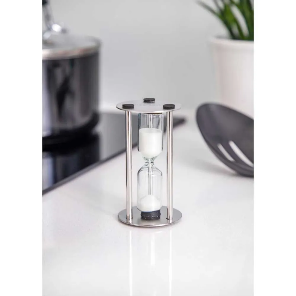Il timer a clessidra da tre minuti MasterClass è perfetto per chiunque ami uno stile accattivante e una buona colazione. Realizzato in robusto acciaio inossidabile con una bella finitura satinata, questo timer a sabbia è progettato per essere estremamente resistente e per occupare un posto d´onore su qualsiasi piano di lavoro della cucina. Capovolgilo e osserva la sua sabbia bianca scorrere verso la metà inferiore, cronometrando esattamente tre minuti. Questo è in genere il tempo necessario per far bollire l´uovo sodo perfetto. Un tuorlo che cola, un croccante toast imburrato e un gadget da cucina elegantemente cool sono gli ingredienti giusti per il pasto mattutino perfetto. Inoltre è protetto.