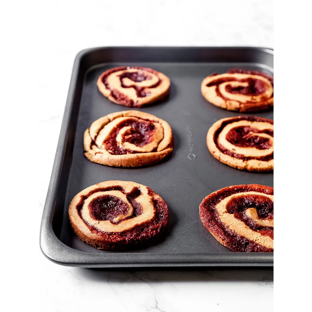 Questa teglia antiaderente MasterClass ti aiuta a cucinare con sicurezza, che tu stia cucinando un pasto quotidiano per la famiglia o cucendo dolci come rotoli svizzeri, brownies e biscotti.