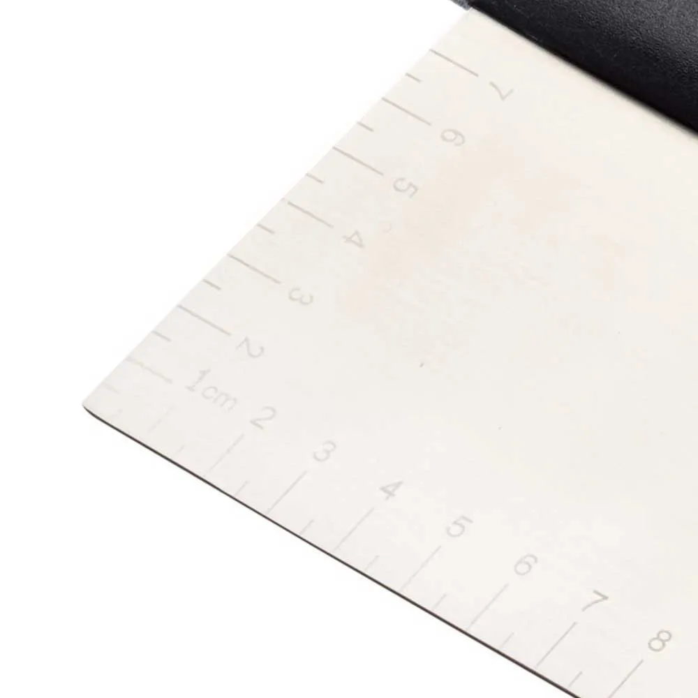 Het mes heeft gemakkelijk leesbare lasergeëtste metrische en imperiale maatmarkeringen.