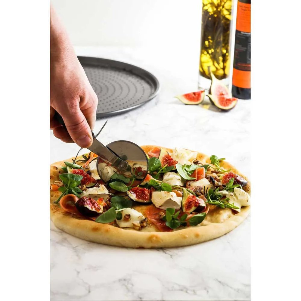 Snijd pizz´s als een expert, elke keer weer, met de MasterClass pizzawielsnijder met zachte grip. Dit pizzawiel heeft een robuust, geslepen roestvrijstalen mes en is ontworpen om soepel en precies te rollen, zodat het gemakkelijk door pizz´s van elke grootte of dikte glijdt. Het is ook voorzien van het unieke nylon handvat van MasterClass. Glad, breed en zacht om aan te raken, het zorgt voor comfortabel gebruik en slipvrije resultaten. Maak er je favoriete hulpmiddel van om die grote, zelfgebakken meesterwerken in stukken te snijden of om je favoriete gekochte pizza met vrienden te delen tijdens een filmavond. Het werkt ook goed met luchtige platbroden en hete, knapperige stokbroden.