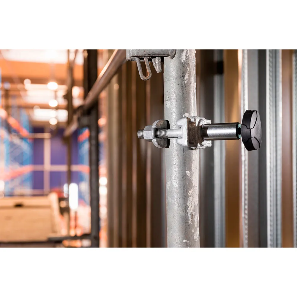 Gebouwd voor de zware omstandigheden op de bouwplaats, is de ondersteuning compatibel met elk rond object of elke paal met een diameter van 40-50 mm Deze universele maatvoering zorgt ervoor dat het perfect past op alle standaard steigersystemen, waardoor het een veelzijdig en onmisbaar hulpmiddel is voor een breed scala aan vakmensen. De stevige grip garandeert dat uw werklamp stevig op zijn plaats blijft, zelfs onder veeleisende omstandigheden, en een betrouwbare en constante lichtbron biedt zolang u die nodig heeft. Upgrade uw professionele gereedschapskist en ervaar het verschil dat perfecte, veilig gemonteerde verlichting kan maken voor uw efficiëntie, veiligheid en de algehele kwaliteit van uw werk