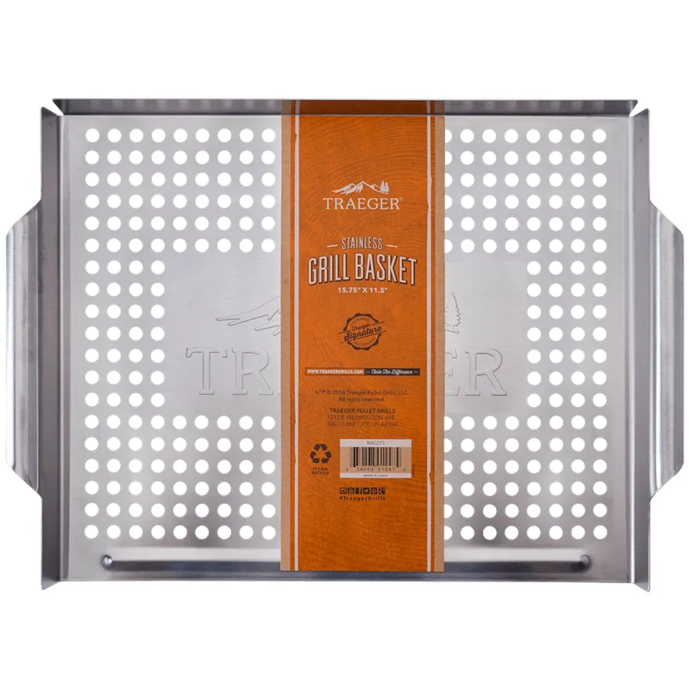 ROESTVRIJ GRILLMAND Bereid met vertrouwen gehakte groenten, garnalen en andere kleine items op de grill met deze roestvrijstalen grillmand.