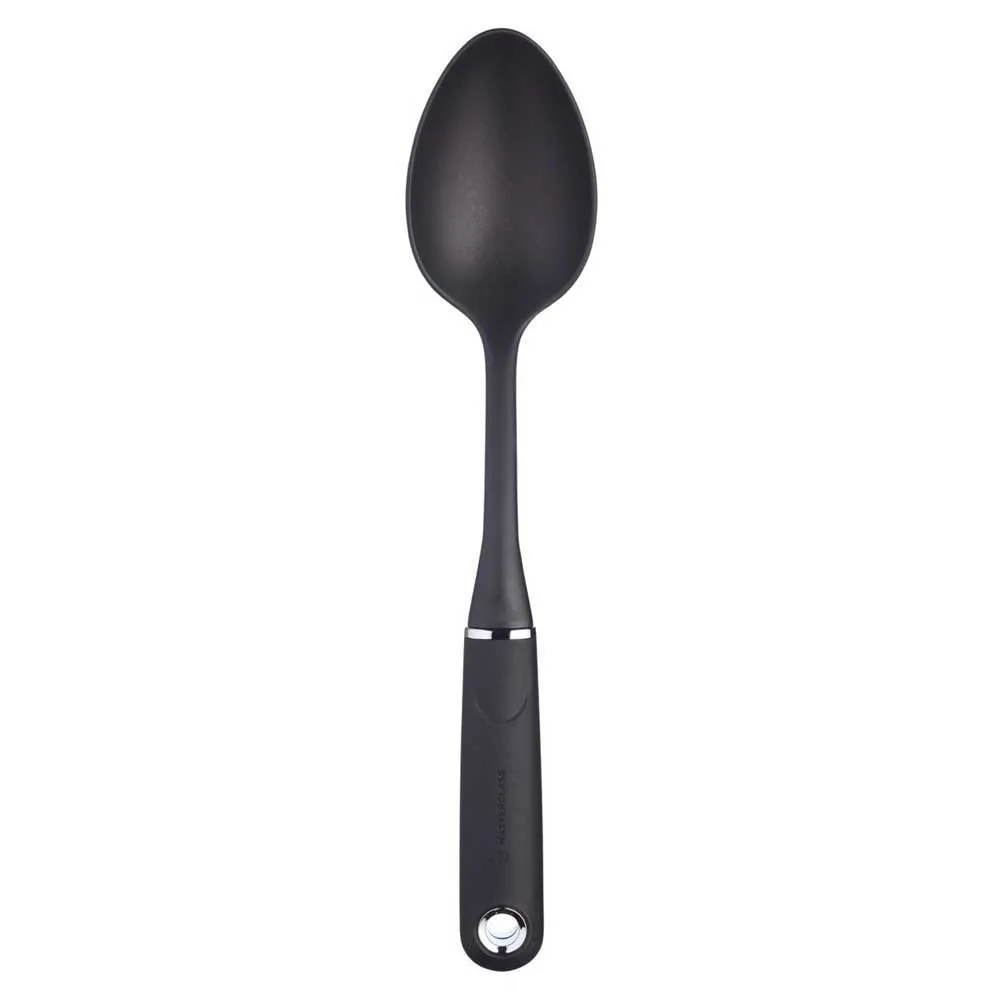 «Røreskjeen gir all den allsidigheten, holdbarheten og komforten du forventer av MasterClass, med den ekstra fordelen av slitesterkt nylon. Den er perfekt for å røre, øse og servere mat på kjøkkenet eller ved spisebordet. Og den er trygg å bruke på alle kokeflater: nylon er tøft nok til daglig matlaging, men skånsomt mot teflonbelegg. Denne premium kjøkkenskjeen har også MasterClass´ unike nylongrep. Glatt, bredt og mykt å ta på, det sikrer behagelig bruk og sklisikre resultater.