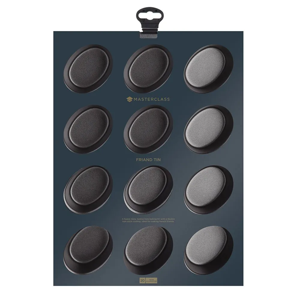 Ta forma do pieczenia friandów MasterClass 12-Hole Non-Stick jest wykonana ze stali węglowej klasy komercyjnej i posiada sprytne podwójne powłoki nieprzywierające.
