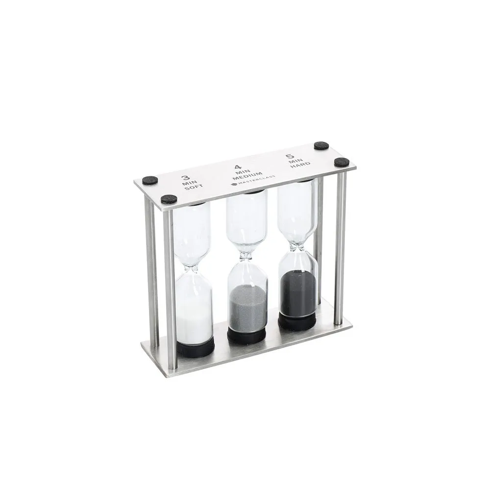 Como você gosta de seus ovos pela manhã? Duro, médio ou mole, você pode ferver o ovo perfeito todas as vezes com o MasterClass Stainless Steel Triple Hard and Soft Boiled Egg Timer / Sand Timer. Ele possui três temporizadores em forma de ampulheta, que medem tempos diferentes para ovos cozidos perfeitos, médios e moles: também é coberto pela garantia de 5 anos da Masterclass.