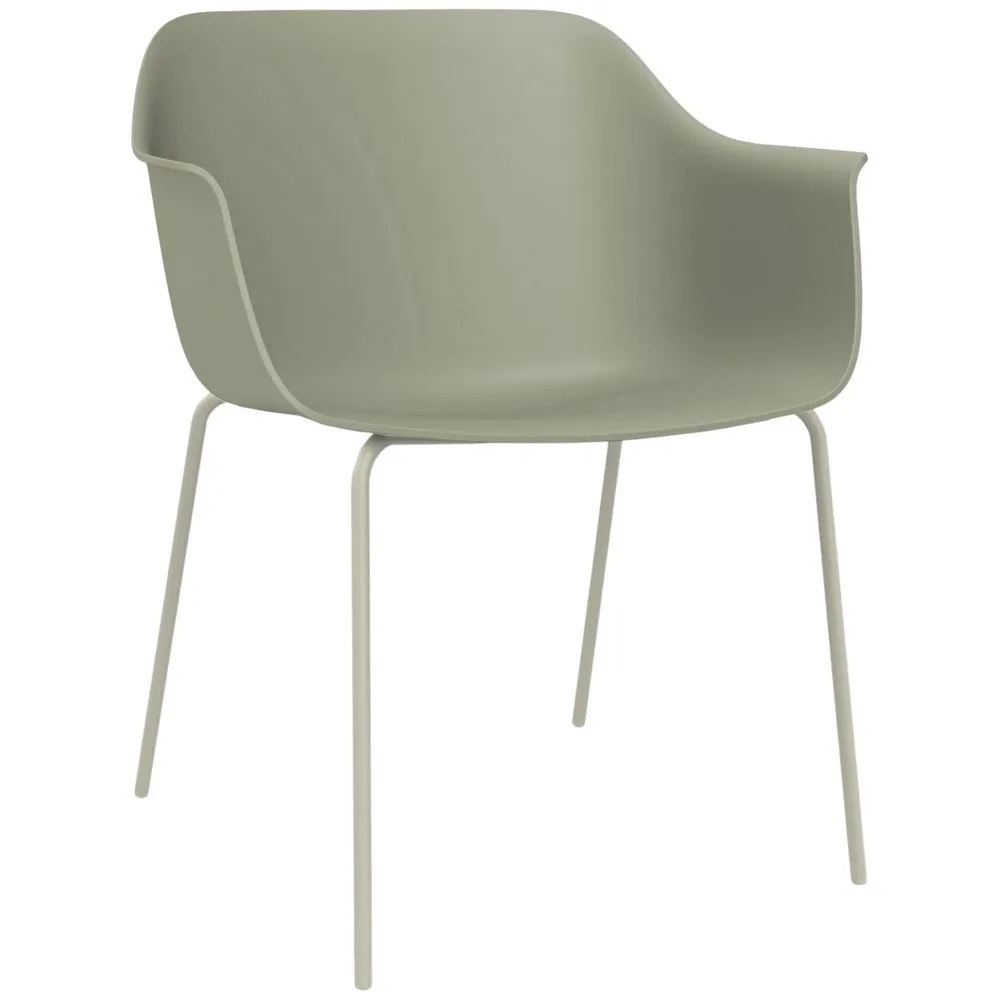 Poltrona para uso interno e externo. Assento e estrutura injetados em polipropileno e fibra de vidro. Sistema de clipagem que permite combinar a estrutura com o assento dos modelos Shape.