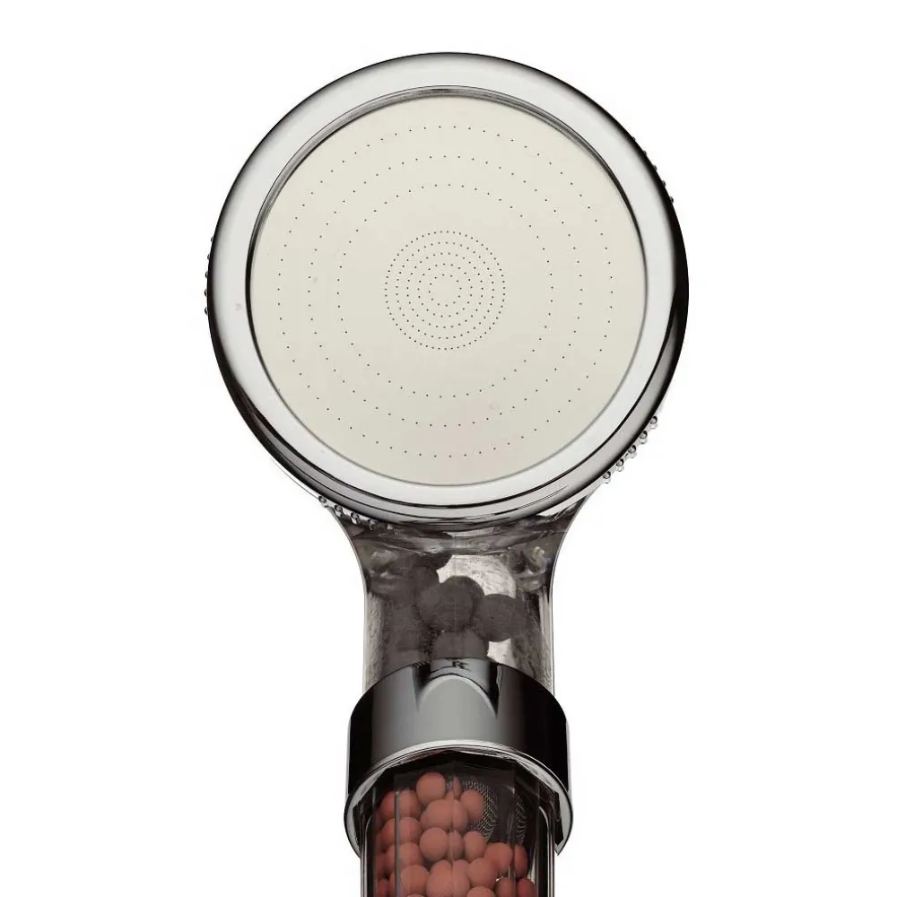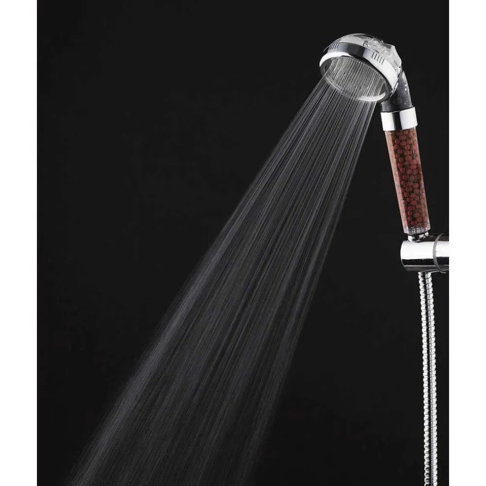 Den har också 2 filtreringsnivåer med turmalinbollar. Dessa kulor som sitter i handtaget släpper ut negativa joner i vattnet som hjälper till att återställa kroppens balans och hudens pH-värde, vilket ger en behaglig känsla av välbefinnande. Det hjälper till att eliminera den irriterande känslan av trötthet och stress samtidigt som det bidrar till att stärka hudens immunförsvar.