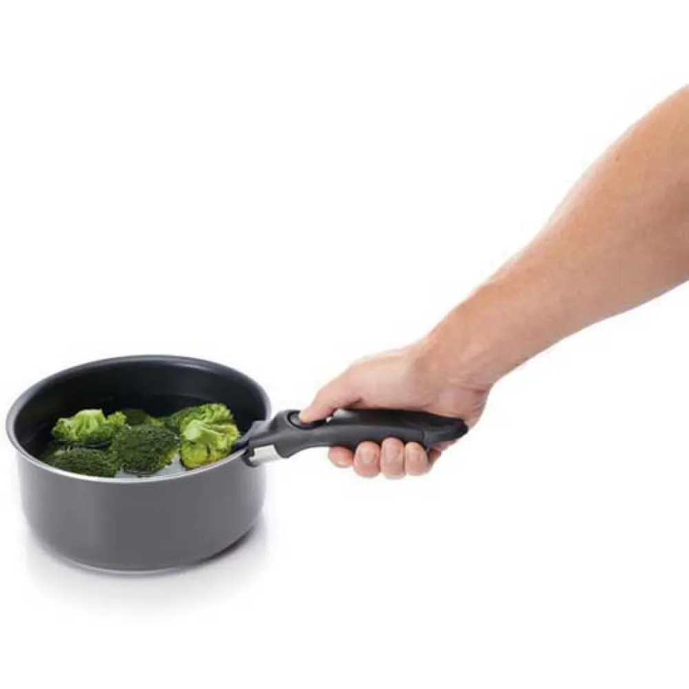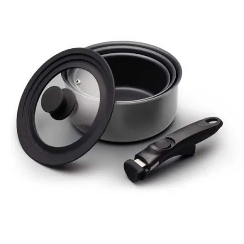 Inget kök är komplett utan ett bra set med non-stick kökspannor redo att hantera knepig bechamelsås för krämiga pastarätter, läckra doftande curry och klassisk vaniljkräm att hälla över puddingar. Men när det gäller att lägga dem undan efteråt kan skåpen bli trångt mycket snabbt. Bli av med förvaringsproblem en gång för alla med detta lyxiga tredelade hopfällbara kastrullset. Detta smarta kastruller tar upp utrymmet för bara en kastrull när den lagras. Kastrullerna lägger sig snyggt ihop, locket som passar alla storlekar sitter ovanpå och handtaget med komfortgrepp kan säkert fästas och lossas med ett enda klick. För att bara lägga till deras mångsidighet kan du också använda köksgrytorna som bakformar för att laga runda bröd av surdegsbröd, morotskaka eller förfriterade mjuka köttbullar marinara.