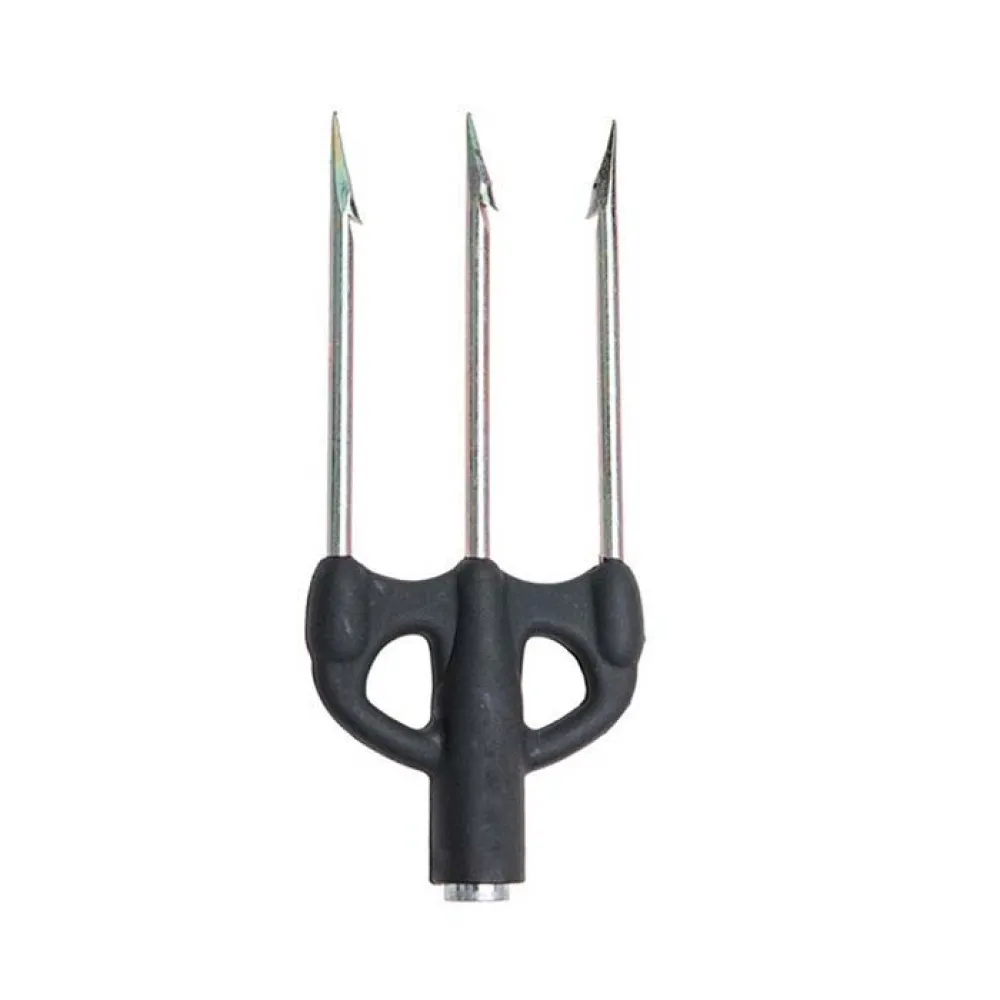 Udstyret med tre skarpe pigge for at øge chancerne for en vellykket fangst og forhindre fisk i at slippe væk.