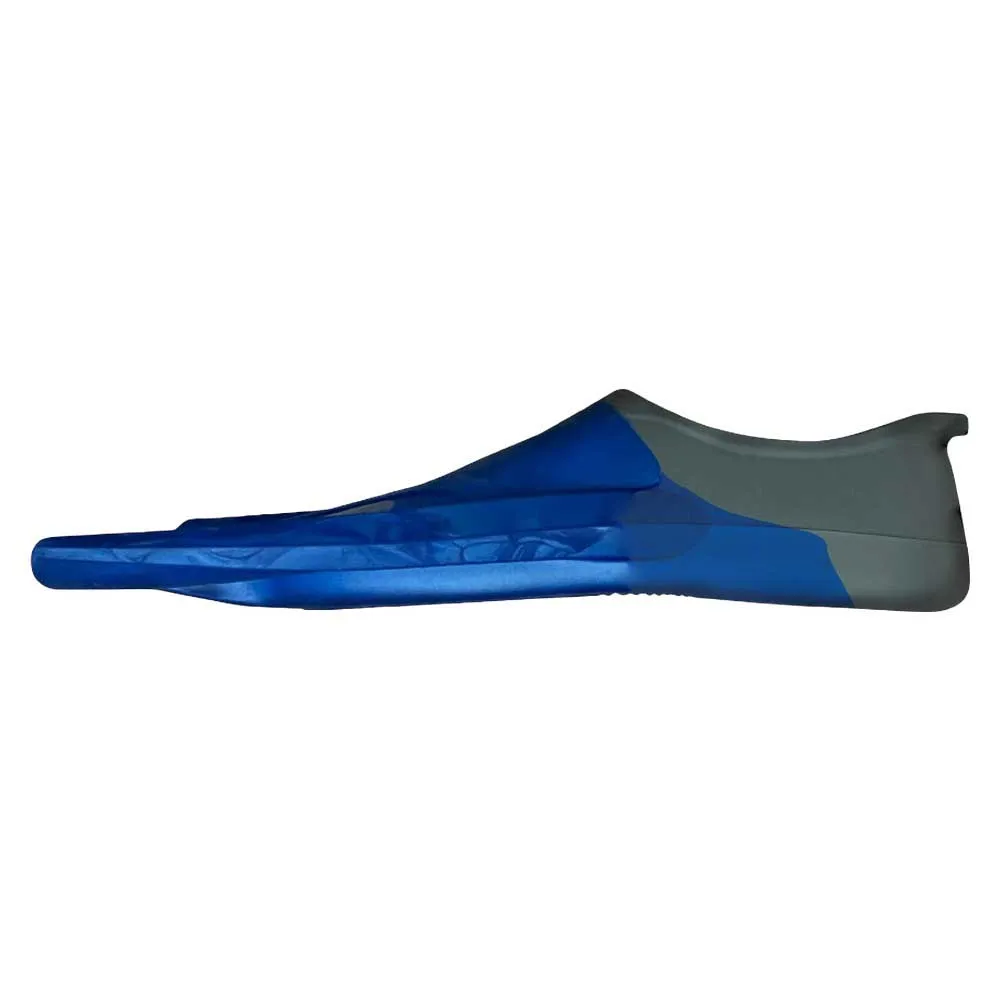 Integreret langs bladet er fleksible vandskinner, der ekspertmæssigt kanaliserer vandstrømmen, forhindrer lateral slip og sikrer, at hver ounce energi dirigeres bagud for maksimal fremdrift. "Rondine" eller svalehaletippen forbedrer yderligere kontrol og finnestabilitet. Selve fodlommen er et ingeniørmæssigt mesterværk, med en fastere blanding til sålen og ribberne for at sikre effektiv kraftoverførsel, mens den øvre del forbliver blød og smidig for uovertruffen komfort.