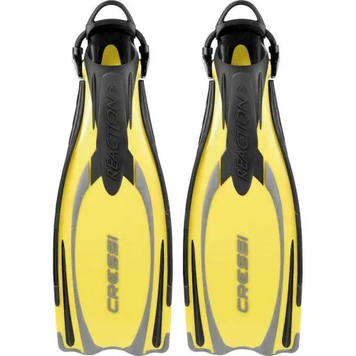 Cressi mest teknisk avancerede fin reaktionen anvender en helt ny polypropylen klinge materiale, der er mere reaktiv, fleksibel og trim end tidligere designs. Det sparker alligevel let kraftigt og er velegnet til dykkere af enhver erfaring niveau. Den nye, længere blade effektivt overfører energi fra computeren designet fod lomme, og ligesom andre Cressi finner, bladet strækker sig fra toppen af ​​foden lomme for at maksimere dens effektive overfladeareal til mere fremdrift. Andre nyskabelser omfatter ny låsning rem spænder og ikke slip materiale for bedre trækkraft op af vandet.