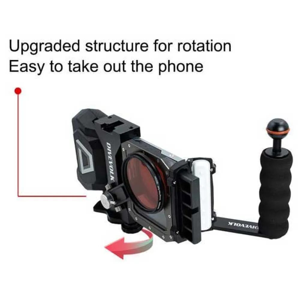 Optag betagende stabile og professionelle undervandsoptagelser med DIVEVOLK Enkelt Håndtag Beslag, et essentielt tilbehør designet til at forbedre din oplevelse med SeaTouch undervands-smartphonehuset. Dette omhyggeligt konstruerede beslag giver et sikkert, ergonomisk greb, så du kan opretholde overlegen kontrol og stabilitet, mens du filmer eller fotograferer den levende verden under bølgerne. Sig farvel til rystende, amatøragtige videoer og goddag til glatte, filmiske optagelser, der vil imponere dit publikum.