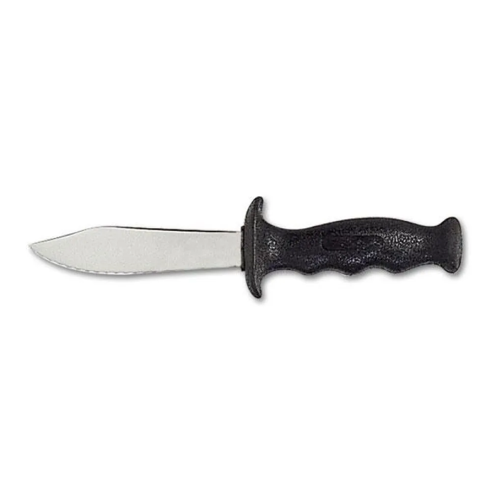 IMERSION Mini prioriterer sikkerhed med sit stumpe spidsdesign. Denne funktion minimerer risikoen for utilsigtede punkteringer eller skader, hvilket gør den til et sikkert valg for dykkere på alle niveauer. Den klare sorte farve sikrer høj synlighed under vand, så du nemt kan finde din kniv, når du har mest brug for den.