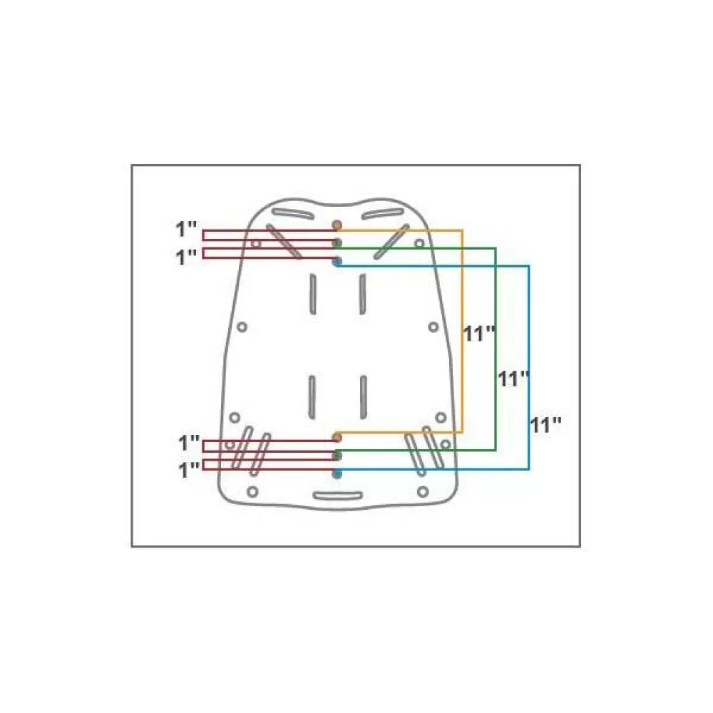 Bagpladen er hjertet i en teknisk opdrift kompensator. Det giver den vitale forbindelse mellem en dykker og hans scuba. Individuelt tryk dannes og alle kanter de snurrede, DOLPHIN TECH back plader har 5cm (2 ") slots for selen og skridtselen samt 10 omkreds huller til fastgørelse af udstyr som stage flasker og dunk fakkel. Der er 3 sæt tanken monteringshuller langs pladens midterlinie, der giver dykning nemmere løsning at finjustere tank til torso position.