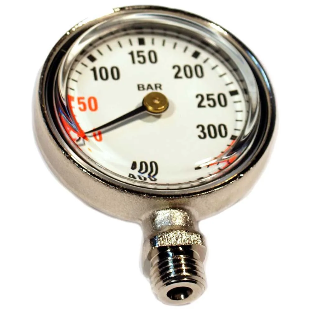 En pålidelig og robust trykmåler til dykning (SPG) der tilbyder fremragende værdi. Denne kompakte 50mm måler har en solid metalkonstruktion, hvilket gør den robust men let. Dens tydelige display med store tal sikrer, at den altid er let at aflæse. Den roses for sin lydløse, raslefri drift og gode ydeevne, og denne billige manometer er perfekt til sidemount, stage cylinder eller pony setups. Et produkt af høj kvalitet, der er vellavet og konsekvent yder godt på dyk.
