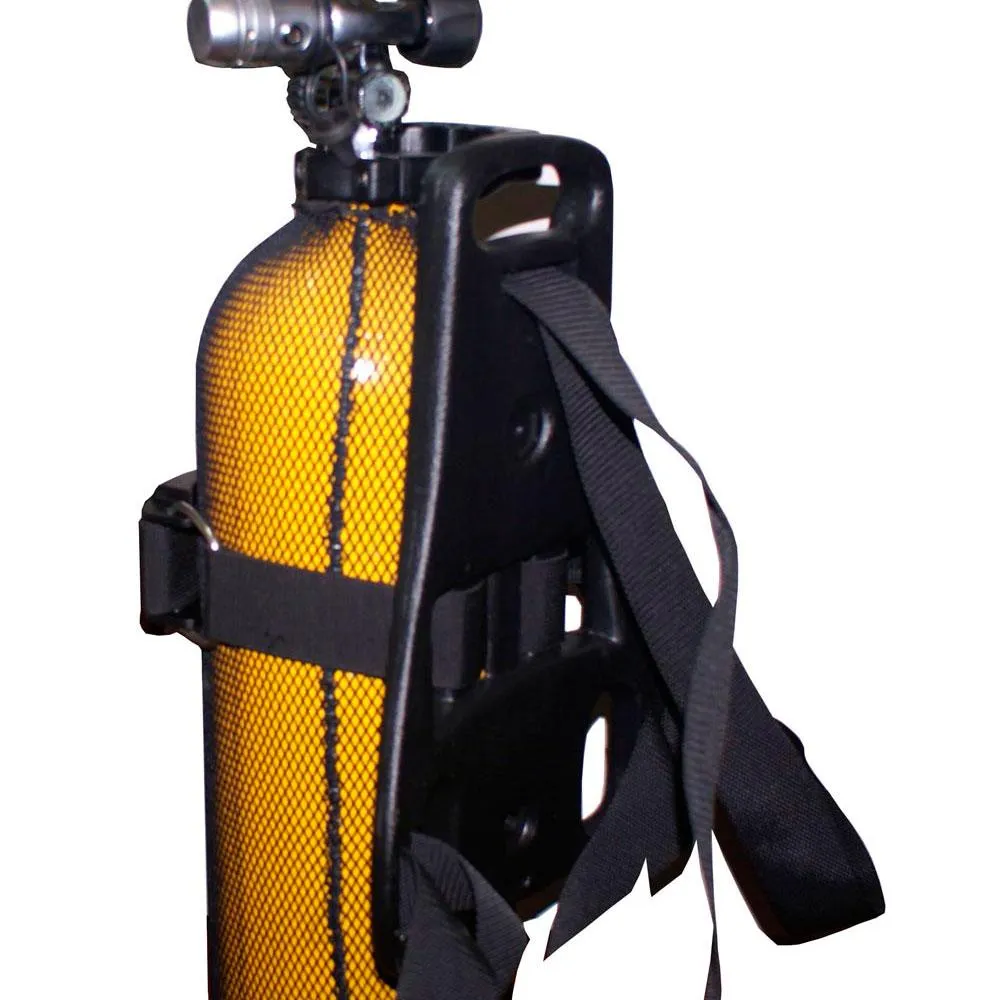 Sikker Cylindermontering: Et kraftigt cylinderbånd udstyret med en robust og letbetjent cam-spænde låser din flaske på plads med sikkerhed. Spændet er designet til et stramt greb, der ikke glider eller løsner sig under dykket. Alsidige fastgørelsespunkter: Strategisk placerede, korrosionsbestandige D-ringe på skulder- og taljestropper giver rigelige punkter til fastgørelse af spoler, målere, overflademarkeringsbøjer og andet vigtigt tilbehør, hvilket holder dit udstyr strømlinet og tilgængeligt.