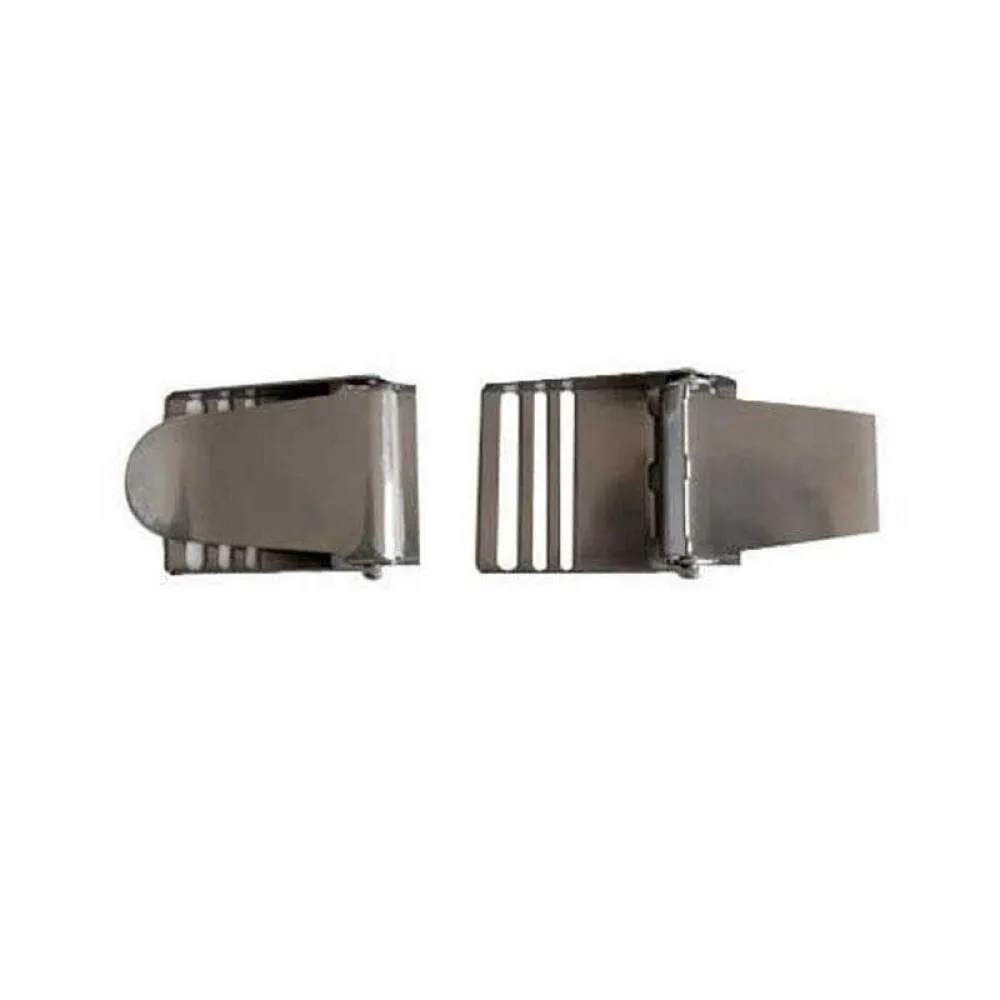 Dette robuste, simple spænde i rustfrit stål tilbyder fremragende kvalitet og ydeevne til sin lave pris. Fremstillet af 1.5 mm tykt rustfrit stål, giver dets funktionelle design med tre slidser et sikkert, skridsikkert greb, der holder dit bælte fast på plads. Det er et holdbart, enkelt spænde, der repræsenterer stor værdi.