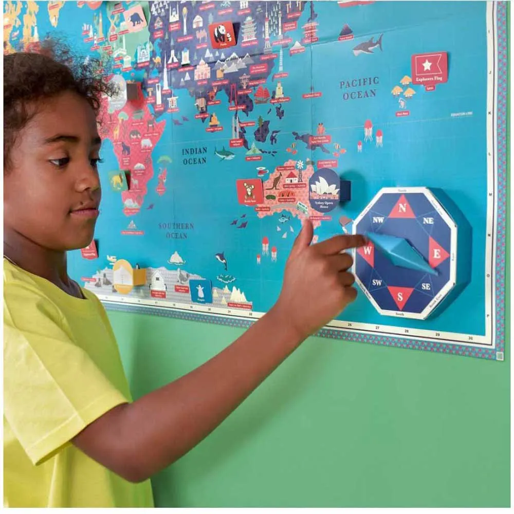 Machen Sie eine Reise um die Welt, entdecken Sie neue Orte und lernen Sie unseren erstaunlichen Planeten kennen. Segeln Sie mit einem Schiff über die Ozeane oder nehmen Sie ein Flugzeug und erkunden Sie den Himmel. Verwenden Sie Ihren 3D-Kompass, um eine Expedition zu planen und neue Länder, Sehenswürdigkeiten und Tiere zu entdecken. Erfahren Sie mehr über verschiedene Zeitzonen und Kontinente. Einfach zu befolgende Anweisungen und unterhaltsame Aktivitätsblätter enthalten.