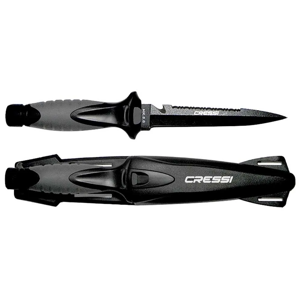 Cressi sind meine Lieblingsmesser seit 2010, sehr einfach zu bedienen, hochwertiger Edelstahl, trägt sich am Bein, fällt nie ab und reinigt Fischschuppen problemlos.