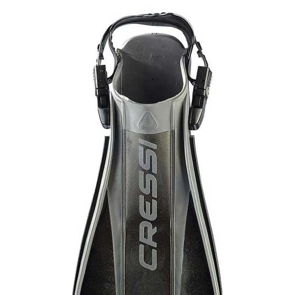 Die Klassiker unter den Cressi-Flossen – sie ist seit vielen Jahren auf dem Markt und bei vielen Tauchern auf der ganzen Welt sehr beliebt. Die Flosse besteht aus einer besonderen Materialkombination aus widerstandsfähigem Copolymer und weichem Elastomer, das für das Fußteil, die Seitenstabilisatoren und einige Einsätze verwendet wird. Das Flossenblatt beginnt bereits oberhalb des Schuhs, wodurch seine Nutzfläche ca. 20% größer als bei einer normalen Flosse von gleicher Länge ist.