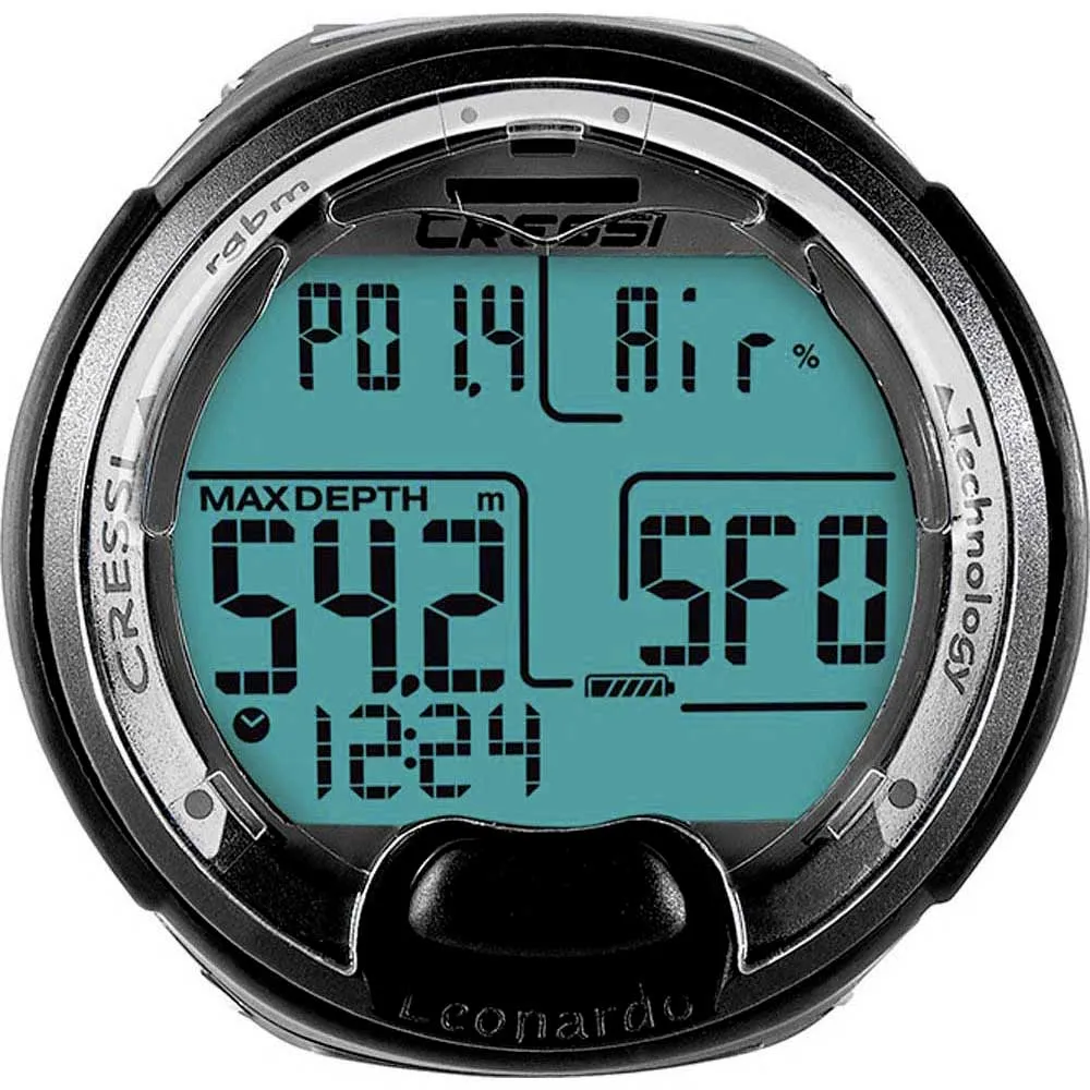 Der Tauchcomputer Leonardo Cressi ist ein multifunktionales Gerät für Sporttauchgänge, das alle erforderlichen Informationen über Tiefe, Tauchzeiten, eventuelle Dekompressionspflicht, Aufstiegsgeschwindigkeiten und Oberflächenpausen zwischen mehreren Tauchgängen liefert. Eine hochentwickelte Software berechnet kontinuierlich die Stickstoffaufnahme und –abgabe, wobei jeweils der Inertgasanteil der unterschiedlichen Gemische berücksichtigt wird. Diese Informationen werden dank des PCD Systems (Priority Compartment Digit Display) auf einem großflächigen Display angezeigt, das einen einfachen und direkten “Dialog” zwischen Taucher und Computer ermöglicht und das Verständnis aller nützlichen Daten im richtigen Moment sowie eine hervorragende Ablesbarkeit in allen Gebrauchssituationen garantiert. Des Weiteren ist der Computer mit einer Uhr und einem Kalender versehen und verfügt über einen großzügigen Speicher für zurückliegende Tauchgänge (logbook) und mittels Schnittstelle über eine Tauchsimulation. Das Rechenmodell von Leonardo berechnet sowohl für die Luft- als auch für die Nitrox-Tauchgänge die Sättigung und Entsättigung. Im letzten Fall können Sie alle Parameter für das Nitrox-Gemisch für Ihren Tauchgang eingegeben: Vom zulässigen PO2 Höchstwert (zwischen 1.2 bar und 1.6 bar) bis zum Sauerstoffgehalt (FO2) zwischen 21% und 50%. Der Benutzer kann ferner das Gerät entweder auf metrische (m-°C) oder auf imperiale Maßeinheiten (ft-°F) einstellen. Der Tauchcomputer Leonardo kann über die Cressi-Schnittstelle (Zubehör) und der entsprechenden Software (Zubehör) an einen Personal Computer angeschlossen werden.