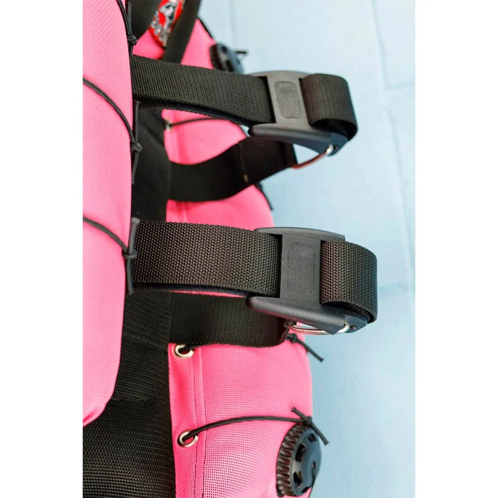 Der Komfort und die Sicherheit des Tauchers wurden höchste Beachtung geschenkt, indem eine bequeme Gurtausstattung aus Cordura 1000 mit einem weichen, doppellagigen Rückenpolster integriert wurde. Die 50-mm-Schnellverschlüsse (Fastex) sind unzerstörbar und einfach zu handhaben. Zudem sind die stabilen und leichten Aluminium-D-Ringe an den Schultergurten und am Taillengurt positioniert, um individuelle Einstellungsmöglichkeiten zu bieten. Die Taillengurt-Schnalle aus Edelstahl, der abnehmbare Schrittgurt und die doppelten 50-mm-Flaschengurte gewährleisten eine perfekte Stabilität.