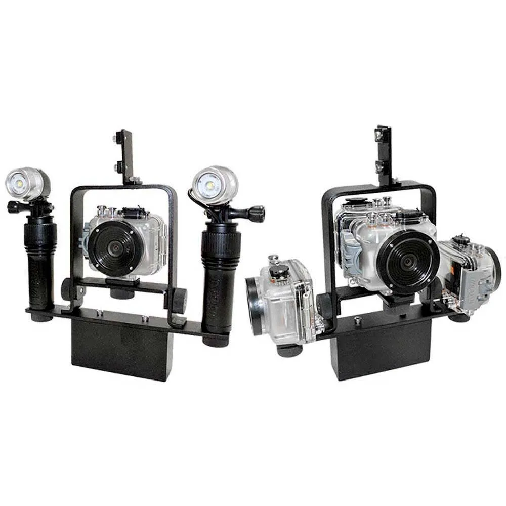 ConneX Multi Bracket Weighted Camera Mount ist ein optionales Zubehörteil, mit dem eine ConneX-Kamera mit (2) Intova Action-Videoleuchten (Modell # AVL) oder bis zu vier ConneX-Kameras gleichzeitig mit optionalem Zusatzarm montiert werden kann. Die Halterung wird mit zwei verstellbaren Klemmen geliefert, um ein ConneX VGA- oder HD-Kabel, das an die Kamera angeschlossen ist, sicher zu befestigen.