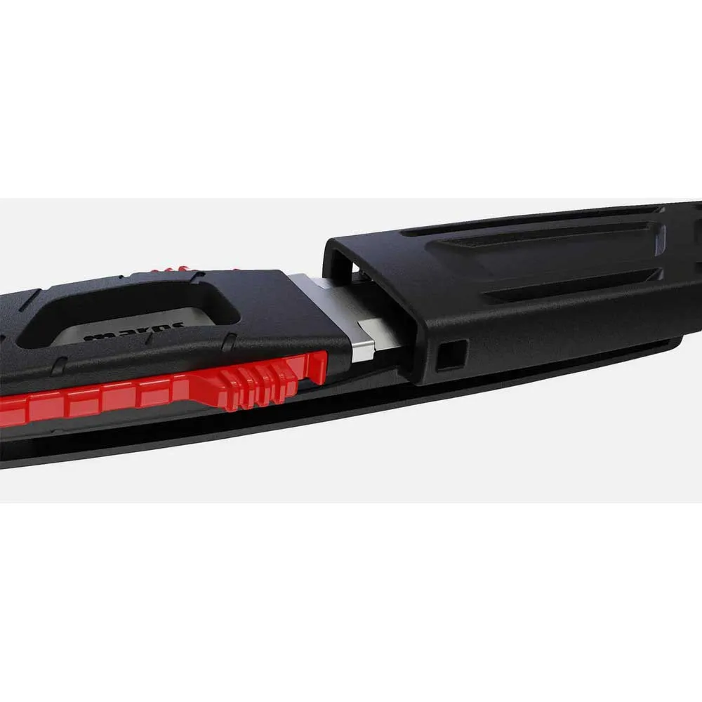 Das MARES MC-100 ist vollgepackt mit Funktionen für den ambitionierten Taucher. Die robuste Klinge verfügt über eine rasiermesserscharfe, glatte Schneide für saubere, präzise Schnitte und eine hocheffektive Mikrozahnung zum mühelosen Sägen durch härtere Materialien. Eine integrierte Leinenabschneiderkerbe, die direkt in den Klingenfuss eingebaut ist, bietet eine zusätzliche Funktionsebene und ist perfekt, um verhedderte Leinen schnell zu durchtrennen, ohne die gesamte Schneide freilegen zu müssen. Das Messer befindet sich in einer robusten, starren Scheide, die sowohl die Klinge als auch den Benutzer schützt. Dieses fortschrittliche Scheidensystem kann mit den beiden mitgelieferten verstellbaren Riemen einfach am Arm oder Bein befestigt oder bequem am Gürtel befestigt werden und bietet so mehrere Tragemöglichkeiten, die Ihrem persönlichen Geschmack und Tauchstil entsprechen. Technische Spezifikationen: