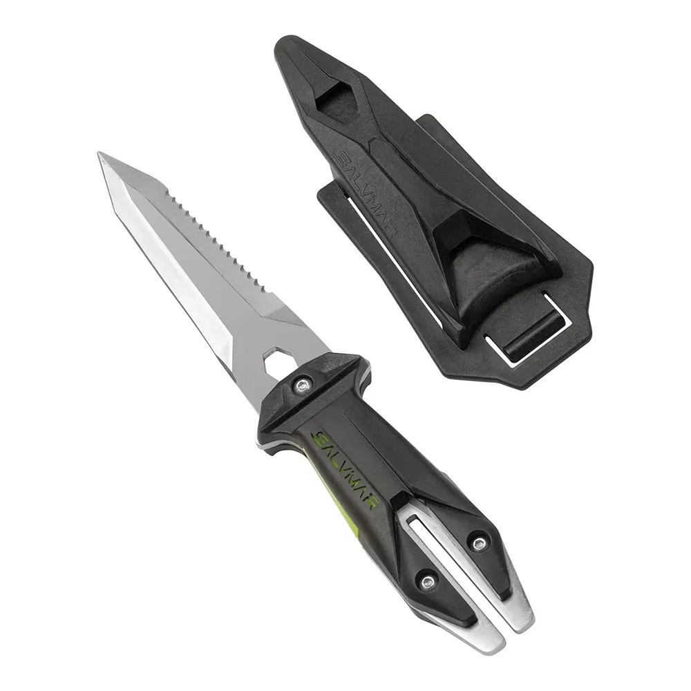 Dieses hochwertige Tauchermesser verfügt über eine superscharfe, spitz zulaufende Klinge und eine robuste, langlebige Konstruktion. Sein ergonomischer Griff bietet einen hervorragenden Halt, obwohl manche ihn als kompakt empfinden. Die sichere Verriegelungsscheide sorgt dafür, dass das Messer niemals verloren geht und lässt sich per Daumendruck lösen. Ein Hauptmerkmal ist der integrierte Schaftzieher, perfekt zum Lösen festsitzender Harpunen. Erhältlich in gut sichtbaren Farben wie Weiß und Grün, ist es ein funktionales und stilvolles Werkzeug, das für sein hervorragendes Preis-Leistungs-Verhältnis und seine Leistung gelobt wird