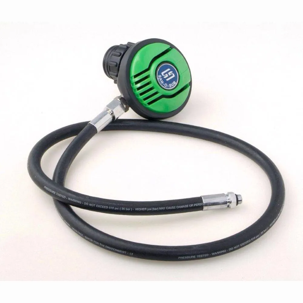 Tauche mit Zuversicht in die Tiefen, in dem Wissen, dass der SAN-O-SUB Octopus im Notfall eine zweite Chance bietet. Dieser zuverlässige und benutzerfreundliche Octopus ist eine unverzichtbare Ergänzung für die Ausrüstung jedes Tauchers.