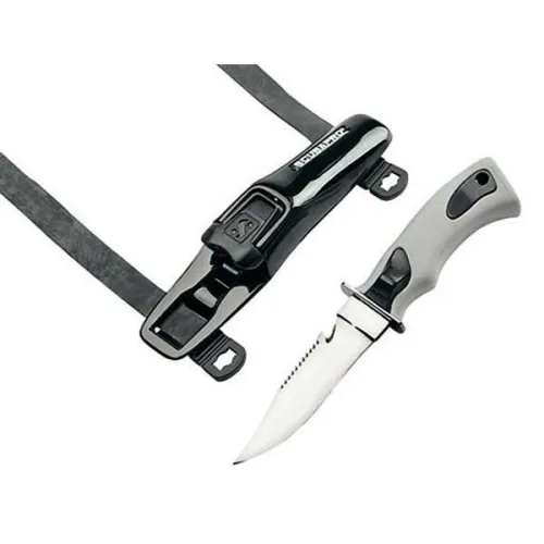 SCUBAPRO-Edelstahlmesser bieten sämtliche Funktionen für alle denkbaren Tauchsituationen. Unsere Edelstahlklingen verfügen über eine scharfe, hohl geschliffene Schneide, eine Schneide mit Sägezahnung und einen Leinenschneider.