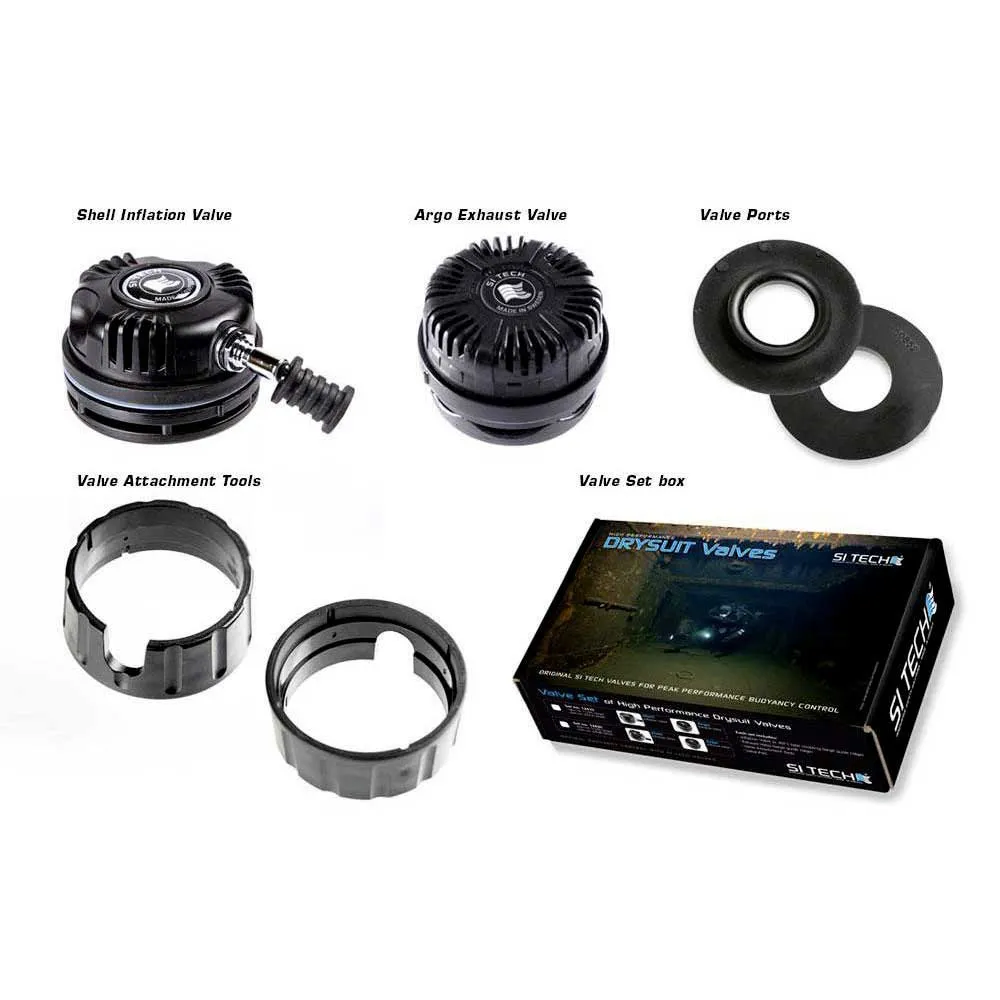 Jedes Set enthält ein Auslassventil (Artikel-Nr. 11335), einer Inflation Ventil (Artikel-Nr. 25210 oder Artikel-Nr. 24780), zwei Ventilanbauwerkzeuge (Artikel-Nr. 18222) und zwei Ventilanschlüsse (Artikel-Nr. 60852 CUT)