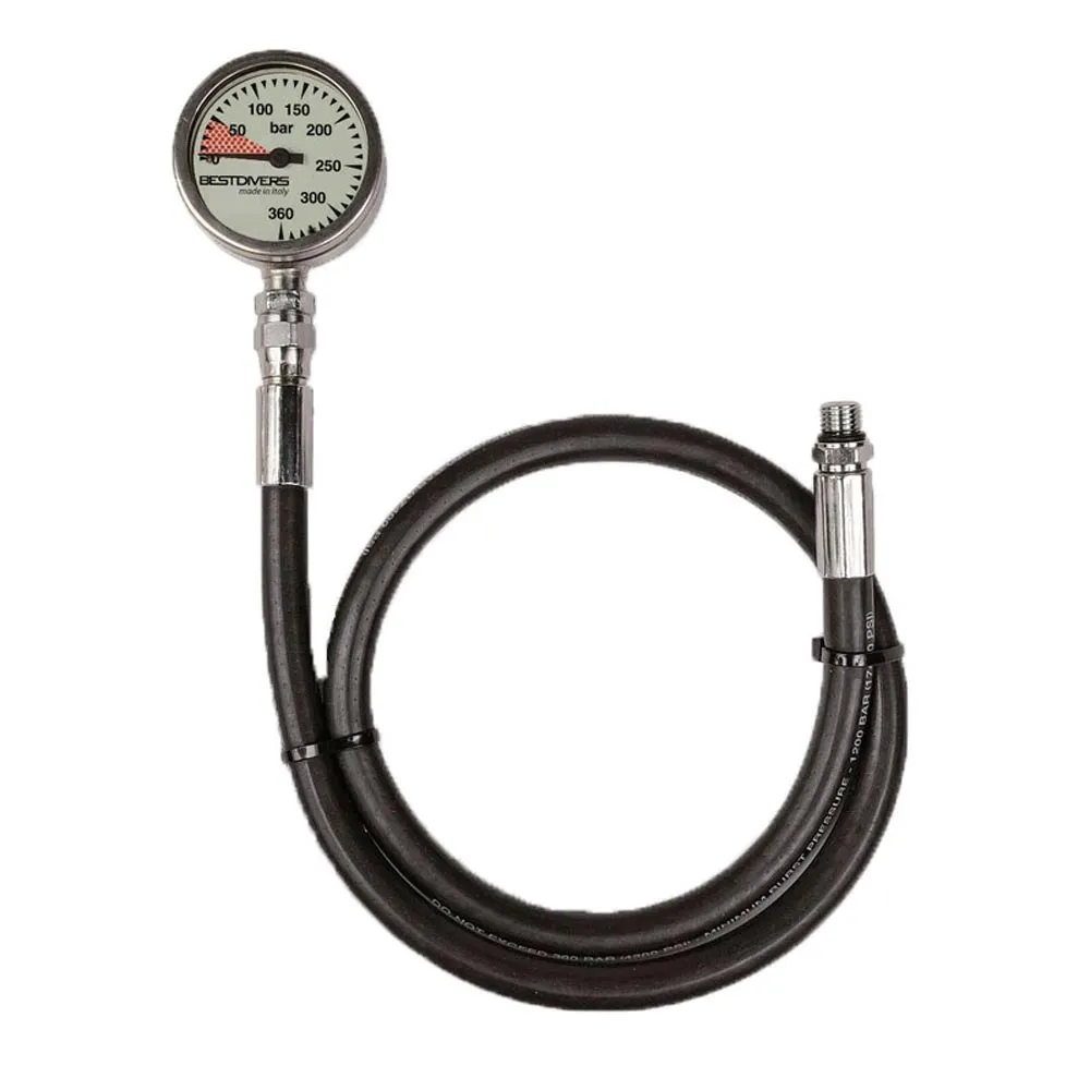 Dive with confidence using the BEST DIVERS Pressure Gauge. This essential instrument provides accurate, reliable, and clear at-a-glance pressure readings, crucial for managing your air supply. Built for demanding underwater environments, it features a highly luminous dial for exceptional readability in low-light conditions and a durable, scratch-resistant lens. Its robust, marine-grade construction ensures long-lasting performance, while the compact design integrates seamlessly with your gear. Trust in this precise and dependable gauge for a safer, more enjoyable dive