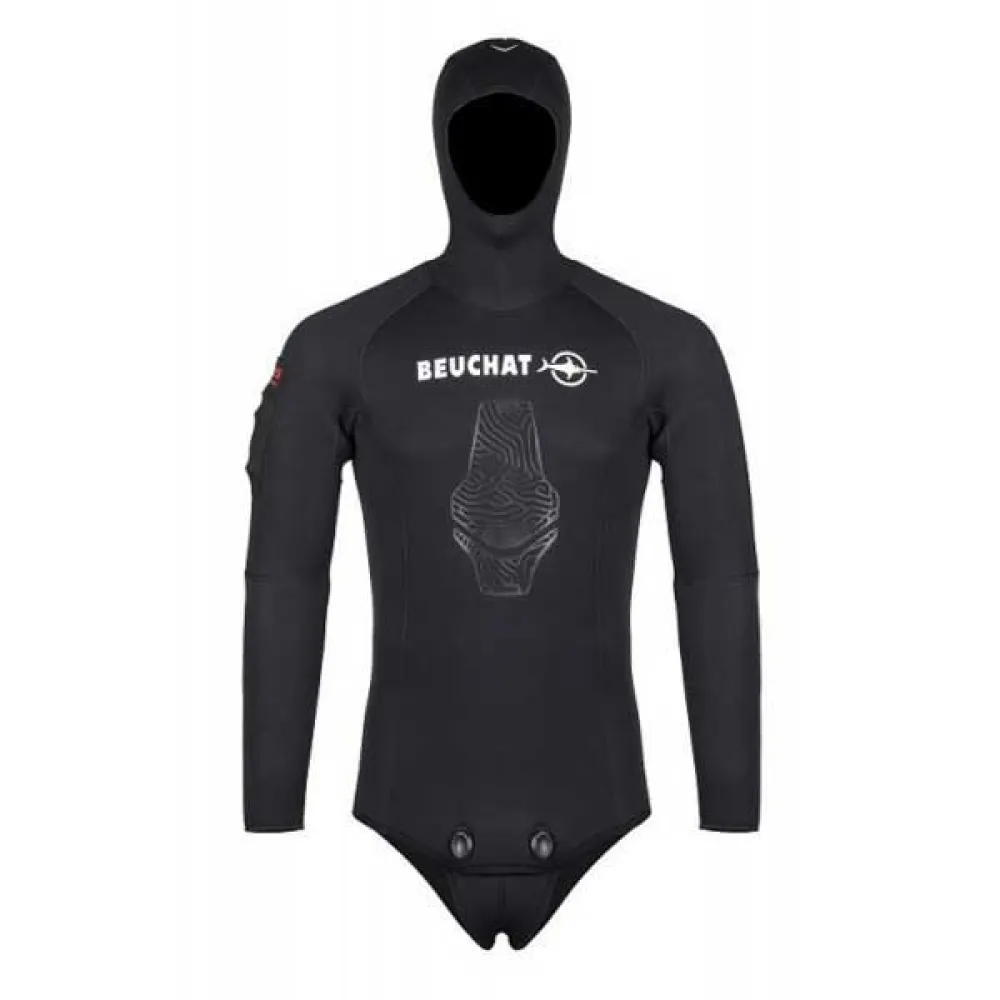 - Under-water spearfishing suit with exclusive Beuchat cut. Anatomical cut preformed at the elbows and knees making for an exceptionally comfortable suit. Easy to put on thanks to the jersey lining. The suit consists of a jacket with separate waist-cut pants.