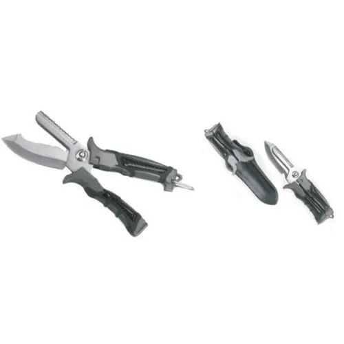 An excellent piece of equipment almost operating like a primary knife but delivering the scissors option. Very good all dive add.