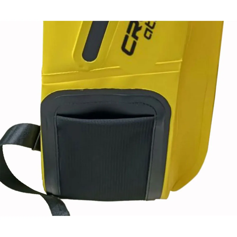 - 100% waterproof backpack with strong and flexible Tarpaulin fabric construction, waterproof zippers and fully heat-sealed assembly.