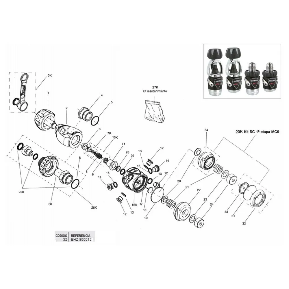 The CRESSI Crown MC9Sc Kit is the perfect solution for divers seeking to enhance their underwater adventures with a reliable and high-performance regulator. This kit provides a comprehensive set of spare parts, ensuring you have everything you need to maintain your Crown MC9Sc regulator in top condition.