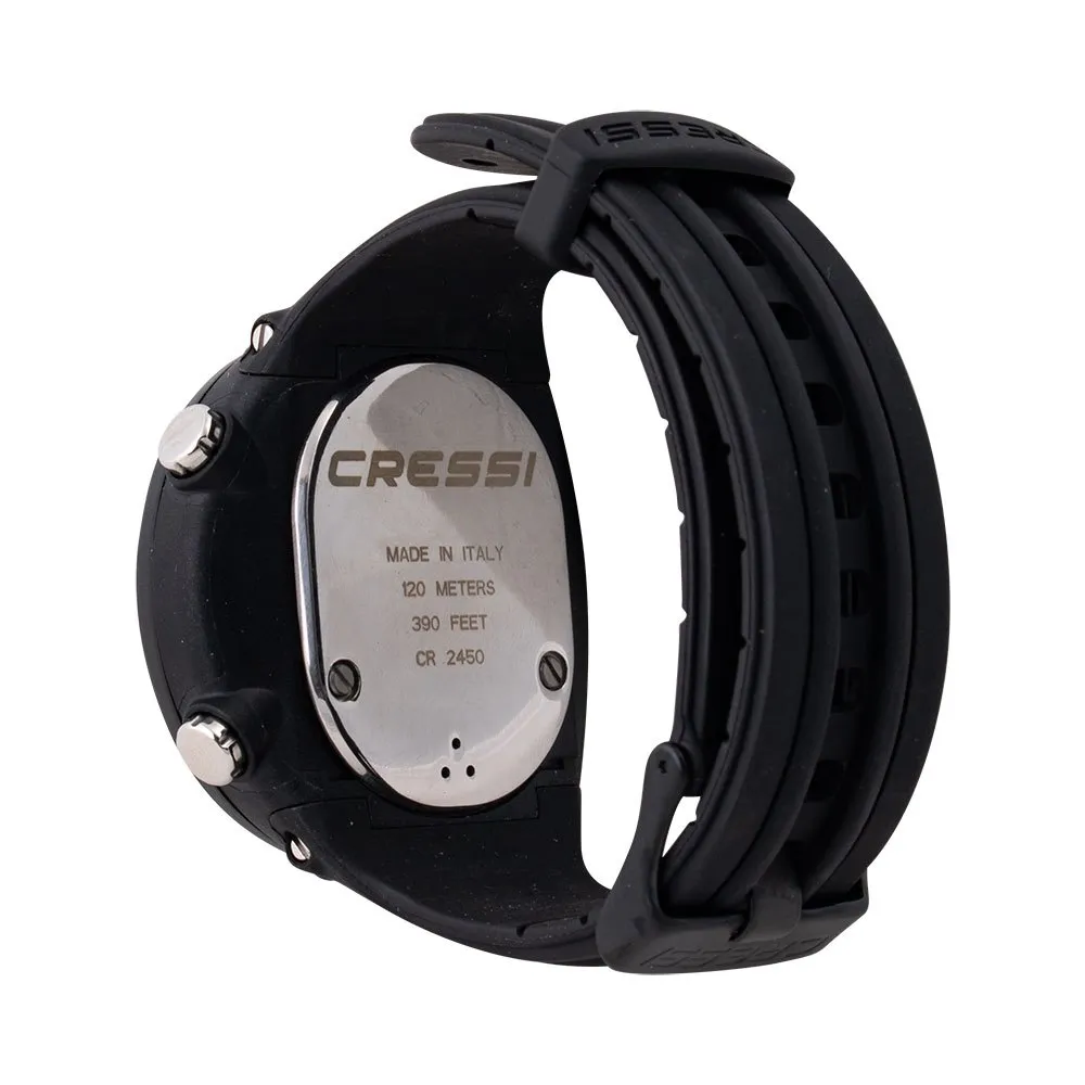Cressi has all the quality control of this product due to the fact that it’s entirely prepared and made in Cressi Elettronica, referring to either the Software programming or its production and manufacture, quality control and after sales service. Under its latest and attractive watch appearance is hiding thorough software which highlights its versatility. Its perfect for advanced divers or technical diving and for apnea or snorkeling, but surprisingly simple for medium diver because of the clear and easy information supply only with two buttons.