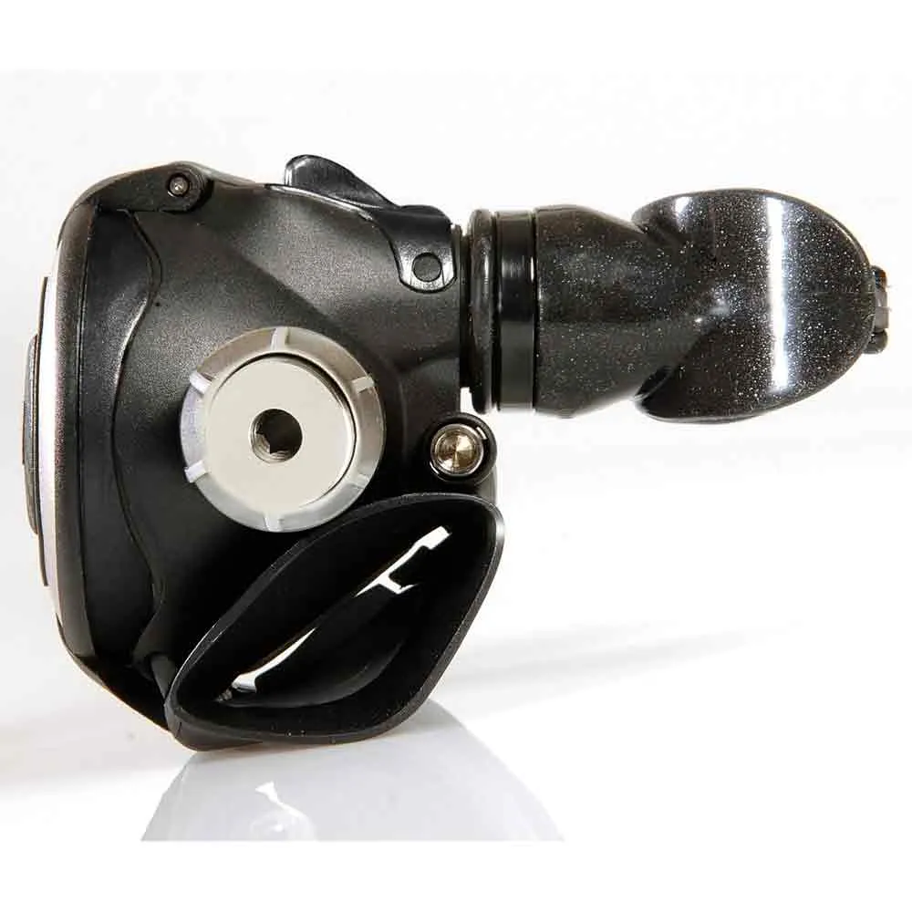 It features 2 high-pressure ports and 5 low-pressure ports. 4 low-pressure ports are located on a rotating turret that ensures that regulator and instrument connections are always in the right position. The fifth port is a co-axial Hi-Flow port and is located at the top of the turret. The rotating turret swivels on 360° axis and features 5 low-pressure ports designed to allow the use of more connections without interfering between them.