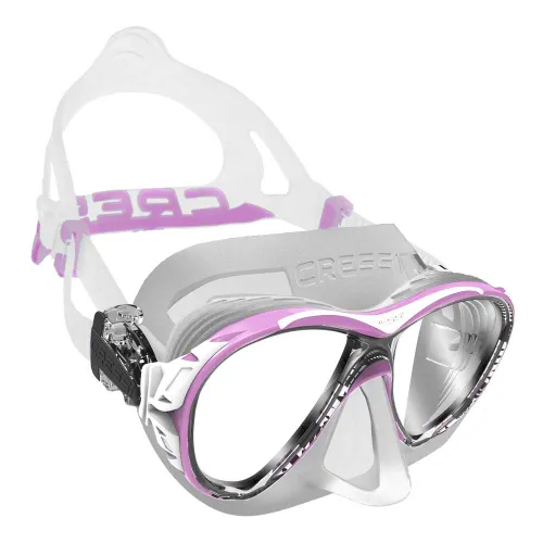 Experience crystal-clear dives with the CRESSI Naxos mask. Its compact design offers a surprisingly wide field of vision and a perfect fit for any face. The revolutionary patented anti-fog system uses internal membranes and external heat exchangers to channel moisture away and regulate temperature, preventing fog before it starts. Enjoy enhanced downward visibility through inclined tempered glass lenses, plus a comfortable bi-silicone strap with a secure micrometric buckle for your ultimate underwater adventure