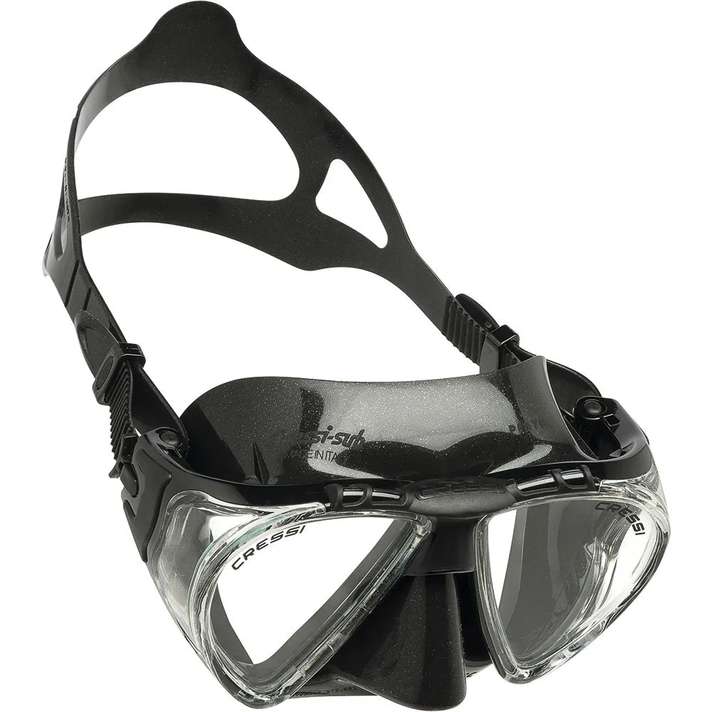 The penta+ is the restyling of the popular penta mask. It has four lenses and also introduces to this sector all the exceptional characteristics of the matrix and the lince. The cressi patented system of raked lenses with an “inverted drop” shape offers incredible downward visibility, ideal for having under control the scuba diving equipment. The clear side windows are made of scratch-resistant material, stronger than glass or polycarbonate. Thanks to them, the mask offers unprecedented lateral visibility and great luminosity for total vision with no compromises. The skirt and the strap are made of hypoallergenic silicone, a very soft material compared to the low-quality pvc, that ensures a perfect seal and comfort. The buckles are embedded in the frame to offer instant adjustment of the strap length, even with one hand.