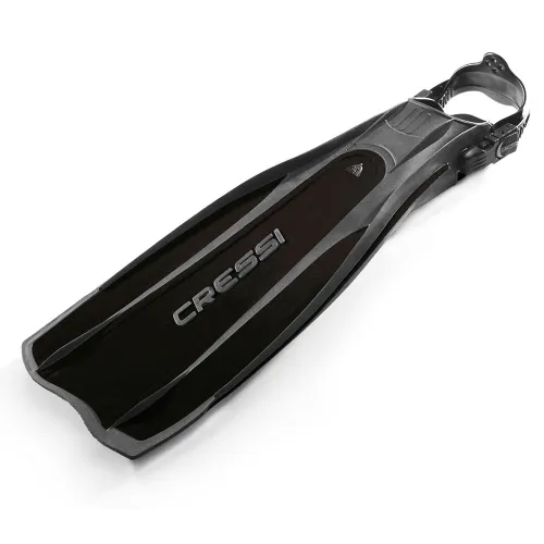 Main propylene body: this material, inherited from apnea fins, has as main feature the extremely rapid energy transmission applied and its great structural rigidity. It is applied on the blade and on the internal sandwich sole area. It is really nervous and reactive and facilitates an effective and agile flutter. It has a relationship effort-efficiency clearly superior to traditional materials (natural or thermoplastic rubber, polyurethane, EVA). It also has a great resistance to breaks to the point that Cressi guarantees it lifelong to a sportive usage.